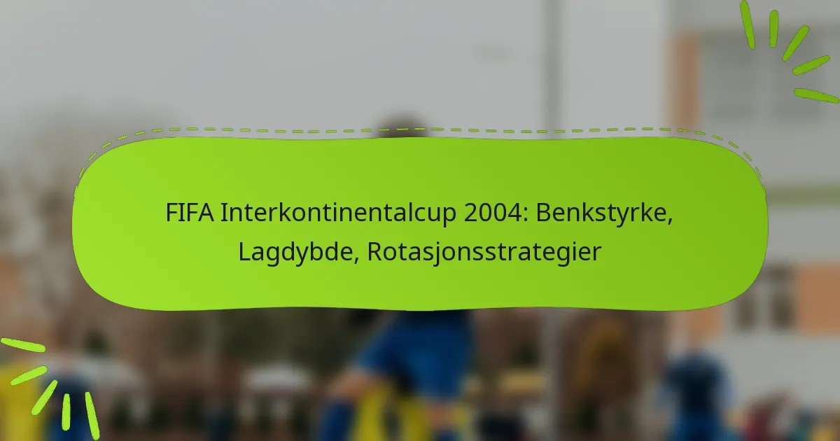 FIFA Intercontinental Cup 2004 fremhevet betydningen av benkstyrke og troppedybde for å oppnå suksess. Lag med kvalitetsinnbyttere var bedre posisjonert til å tilpasse seg kravene i turneringen, og håndtere spillerutmattelse og skader effektivt. Trenere benyttet rotasjonsstrategier for å opprettholde høye prestasjonsnivåer, og sikret at troppene deres forble konkurransedyktige gjennom hele konkurransen.