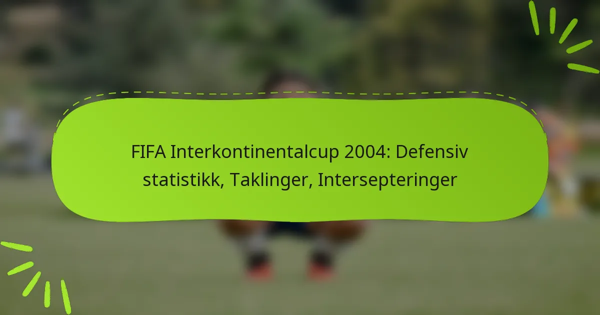 FIFA Intercontinental Cup 2004 viste betydelige defensive statistikker som spilte en avgjørende rolle i kampene. Nøkkelmetrikker som totale taklinger, interceptions, klareringer og blokker fremhever hvordan lagene håndterte sine defensive oppgaver og påvirket kampresultatene.