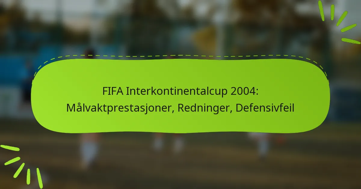 Defensive feil påvirket betydelig resultatene av kampene i FIFA Intercontinental Cup 2004, noe som førte til kritiske mål og endret kampdynamikken. Lagene møtte utfordringer med defensive feil som resulterte i nøkkeløyeblikk som påvirket deres samlede prestasjon.